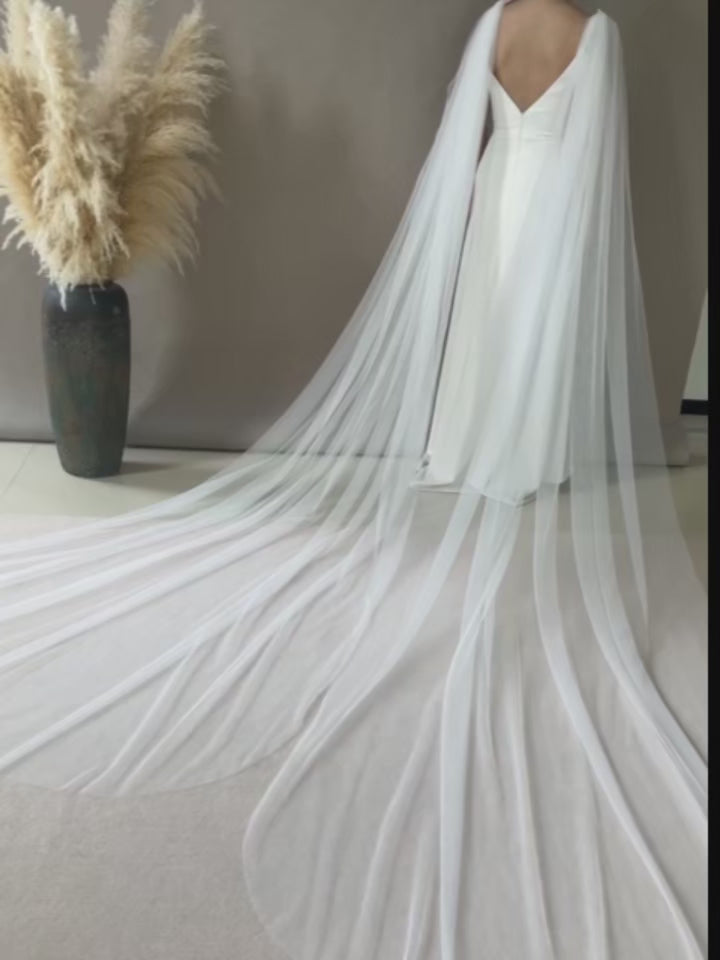 - Pour une robe volumineuse : choisissez une cape légère en tulle qui ne surcharge pas votre silhouette.