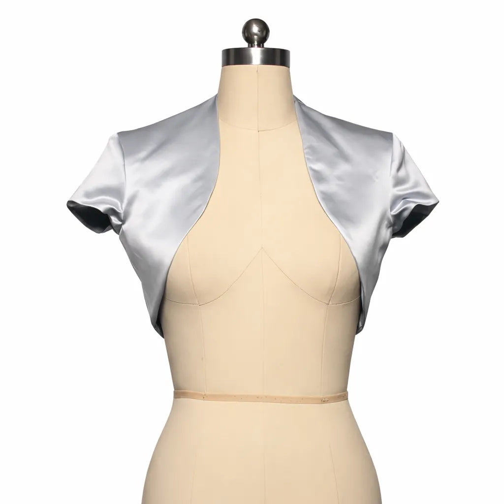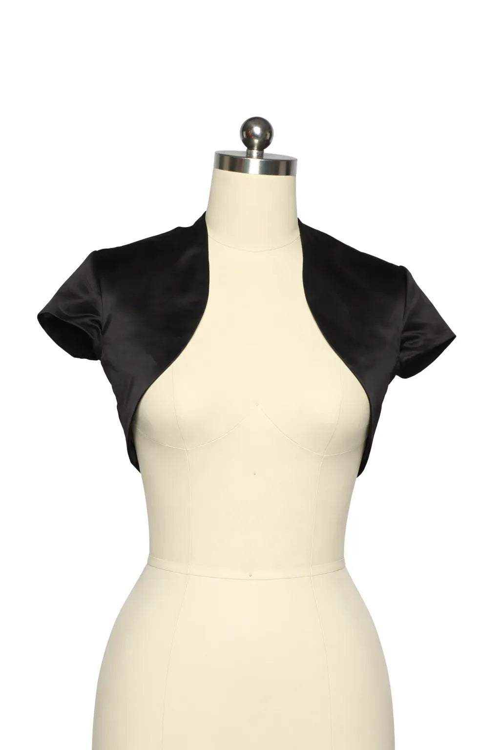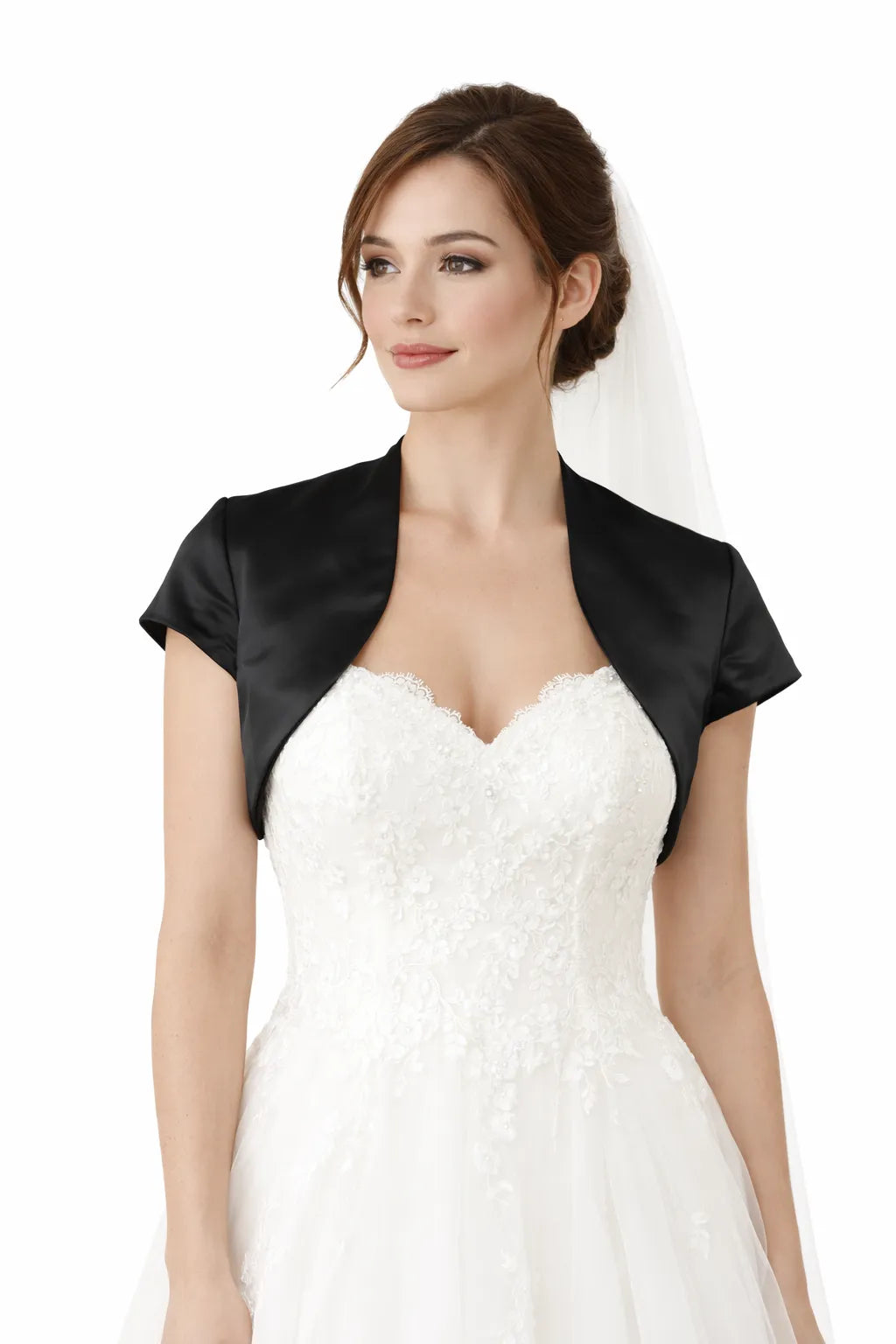 Avec ses manches courtes et son col légèrement relevé, ce boléro assure un maintien parfait et un style intemporel.