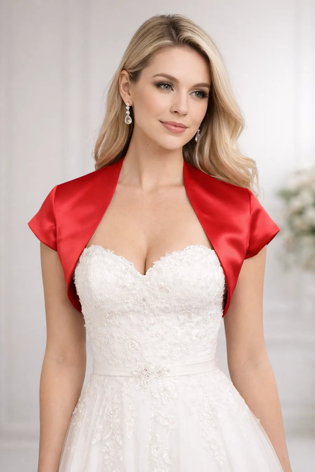 Ce boléro en satin lisse et brillant ajoute une touche d’élégance et de raffinement. Son design fluide et structuré sublime la silhouette tout en offrant une finition impeccable.