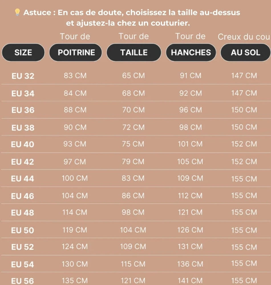 La majorité de nos robes sont fabriquées sur mesure, y compris celles en taille standard (32, 33, 34, etc.) ou personnalisée, ce qui ne permet pas de retour, sauf en cas de défaut apparent.