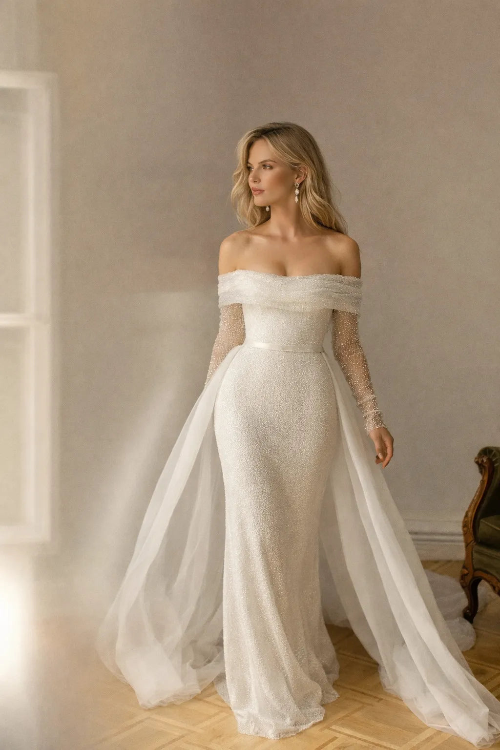 🌟 Manches longues : parfaites pour un mariage en demi-saison.