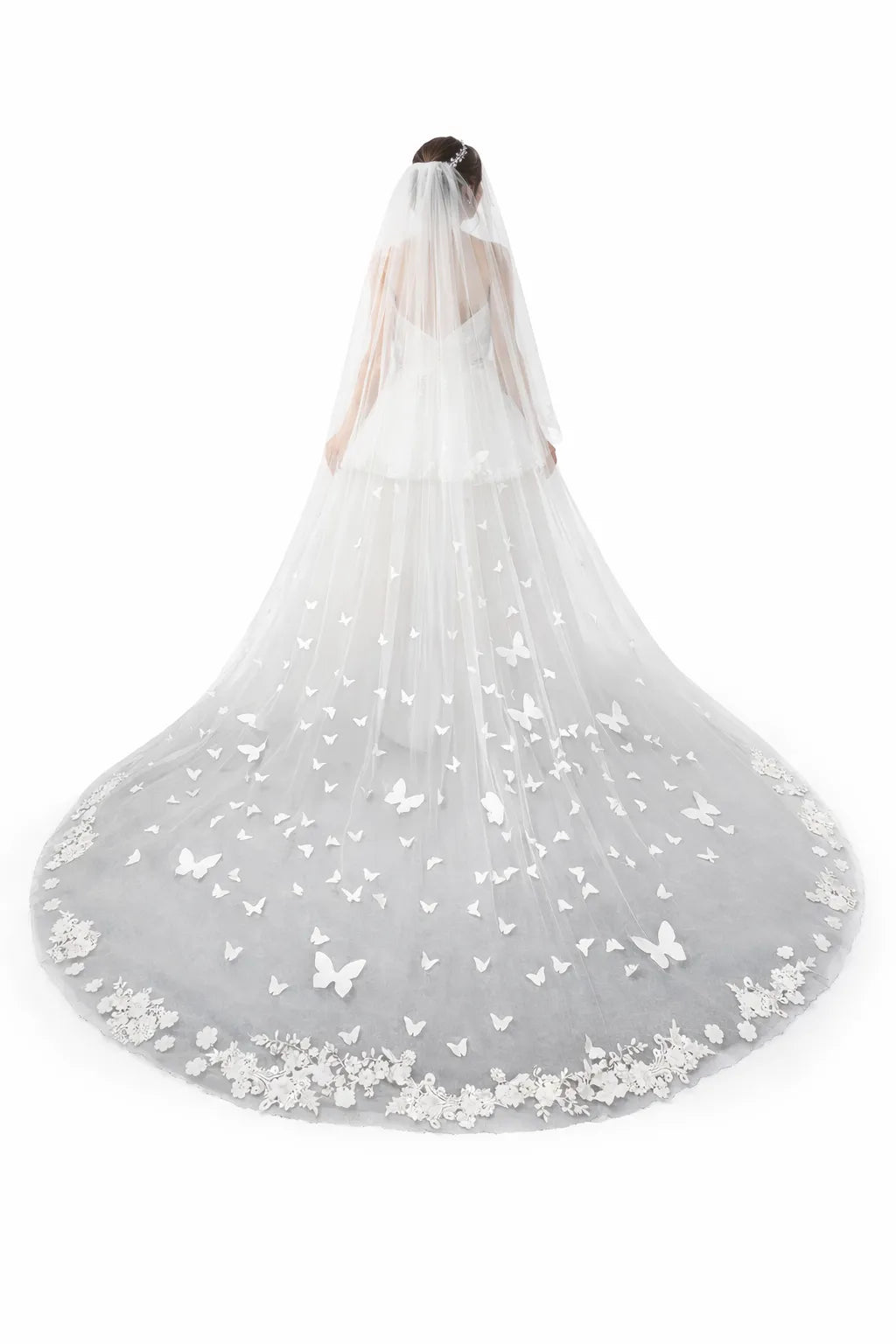 Le papillon évoque la liberté, la transformation et le renouveau — une symbolique parfaite pour célébrer ce nouveau chapitre. Ce voile ne se contente pas d’habiller votre tenue : il raconte une histoire.